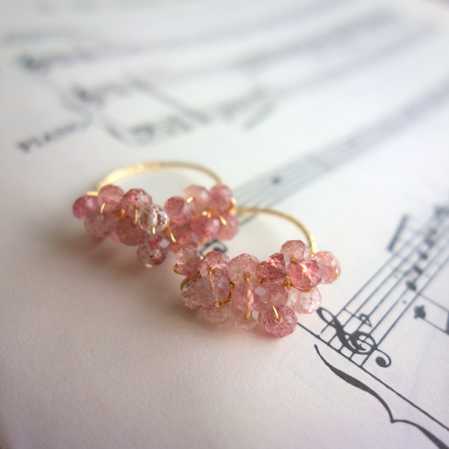 こちらのワイヤー(14Kゴールドフィルド)はツイスト彫刻入りで質感がよく、華奢ながらとてもしっかりとしていて、たくさんのトーンを支えています。