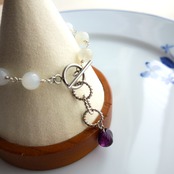 ブルーやグリーン、パープルが素敵なのフローライトと、優しい光を放つムーンストーンが、調和のとれた美しさを引き立てています。