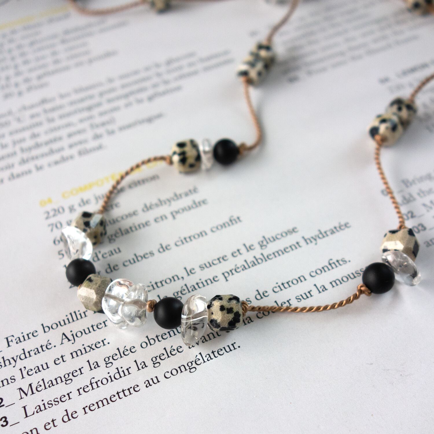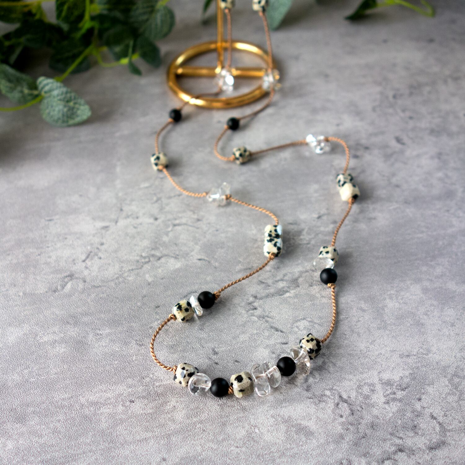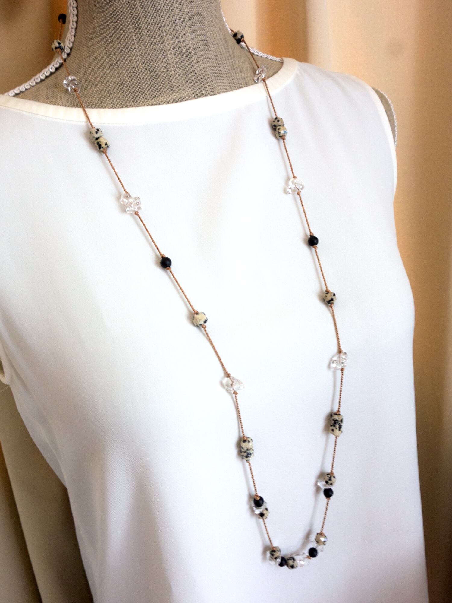 Cocoru _ ココル/ダルメシアンジャスパー* ロングネックレス_98cm【シルクコードネックレス】