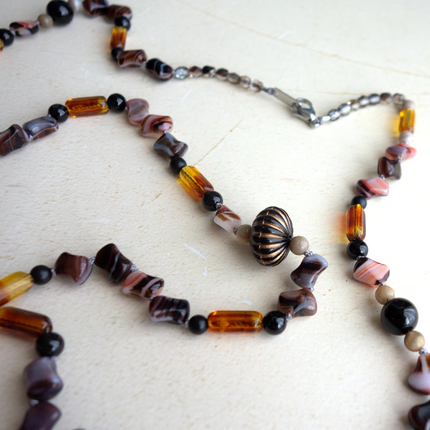 Écailles_エカイユ *べっこう色と黒の多彩なチェコビーズネックレス