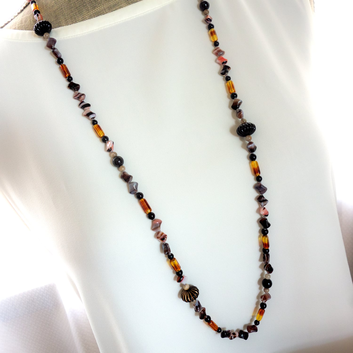 Écailles_エカイユ/べっこう色と黒の多彩なチェコビーズ*【シルクコードネックレス _98cm】