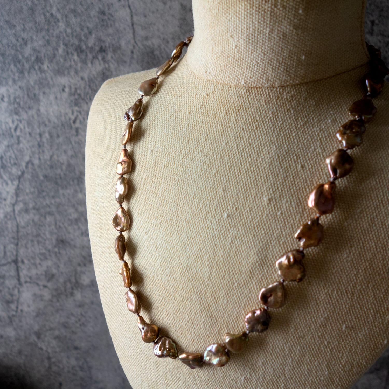 シルクコード・オールノットで一粒ずつ丁寧に結び留めたネックレスは、