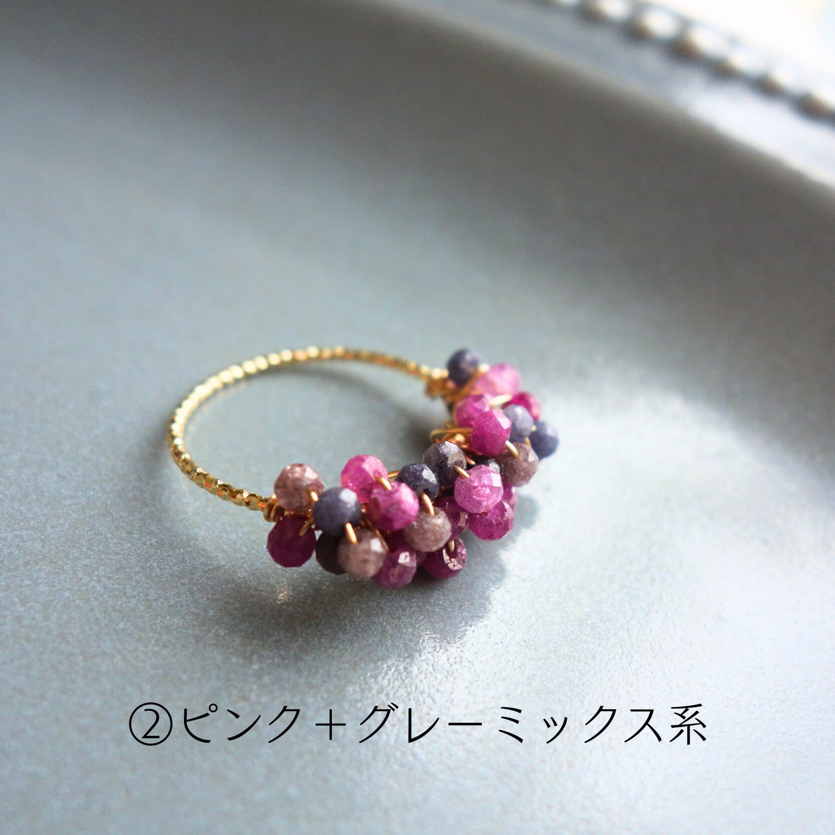 ②ルビー&サファイア_コランダムミックス_ピンク+グレーミックス系