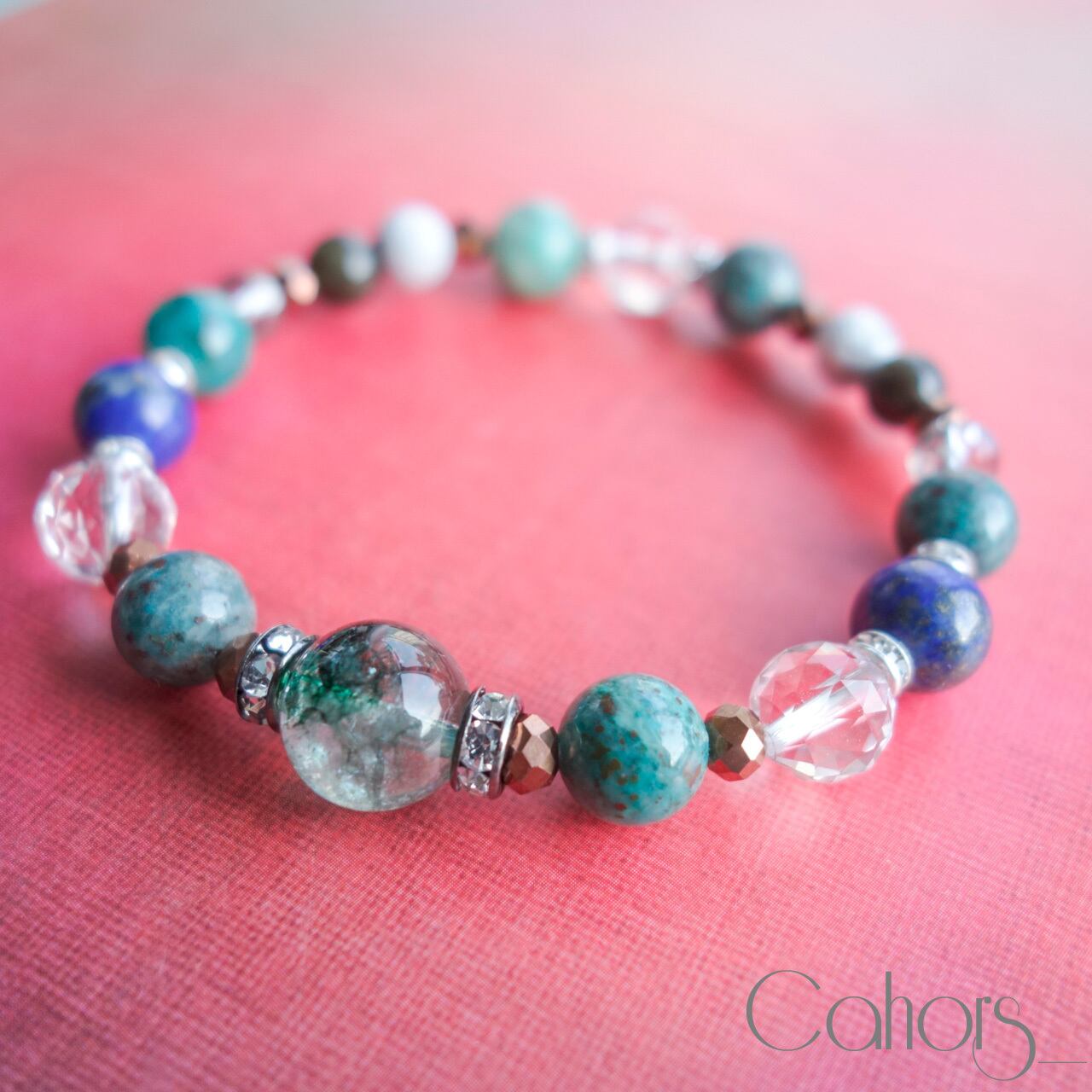 #74「クリソコラ×クラック水晶 」_天然石ブレスレット