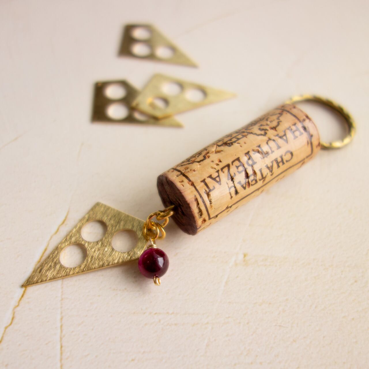 キーホルダーとしてご使用の際は、コルクの上の部分の二重カンにキーを追加することをお勧めしますが、