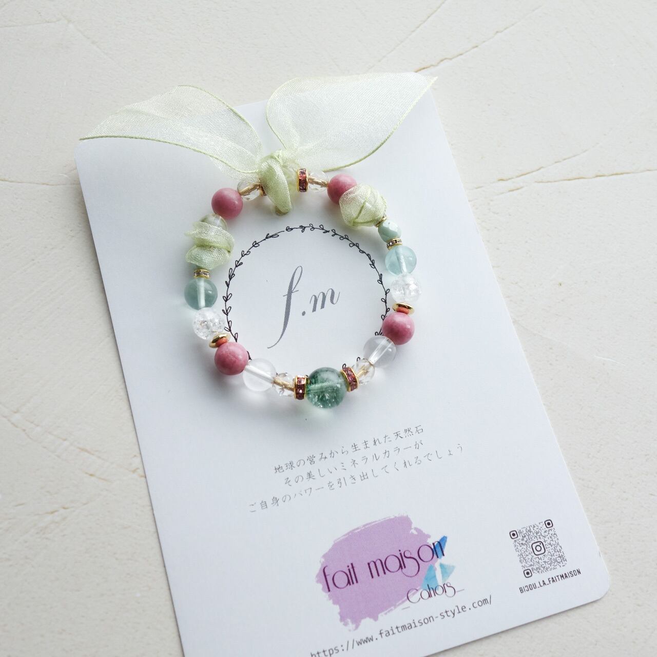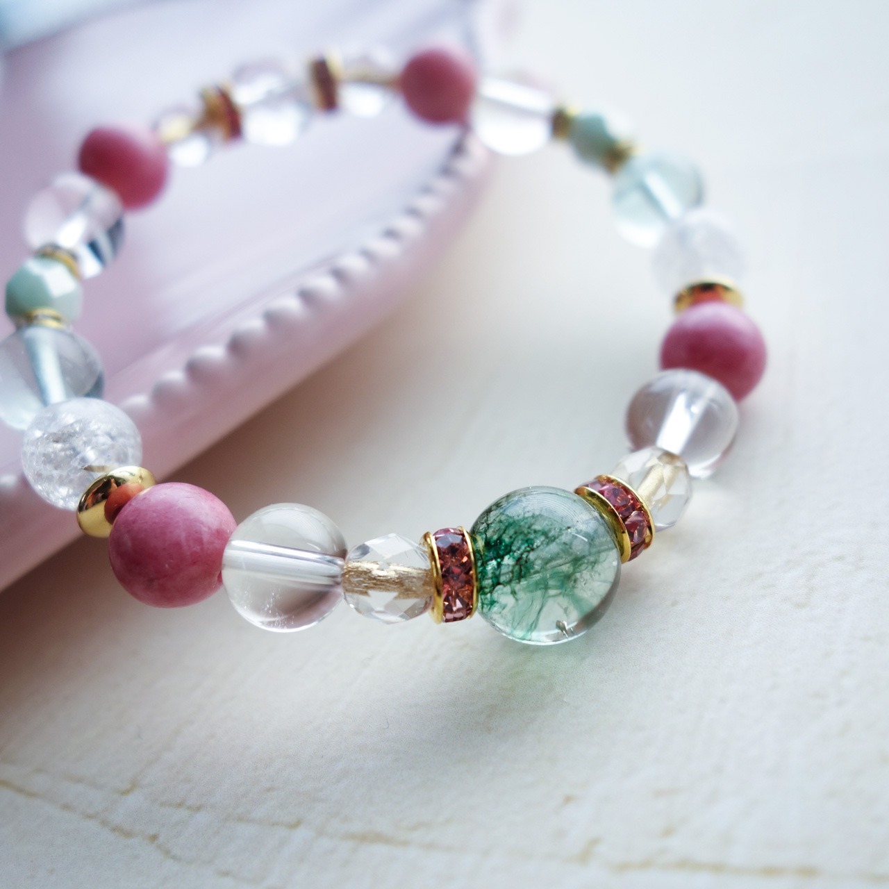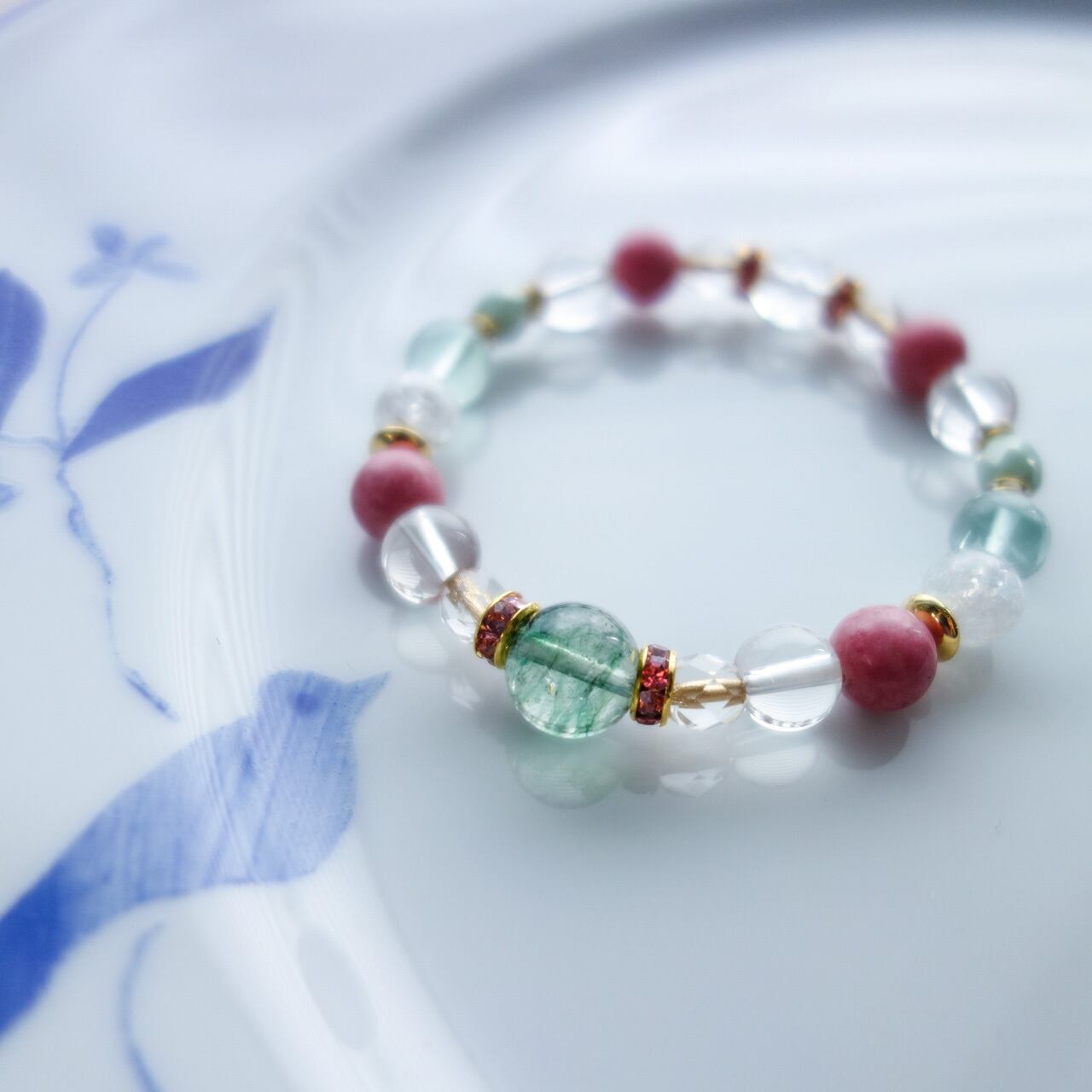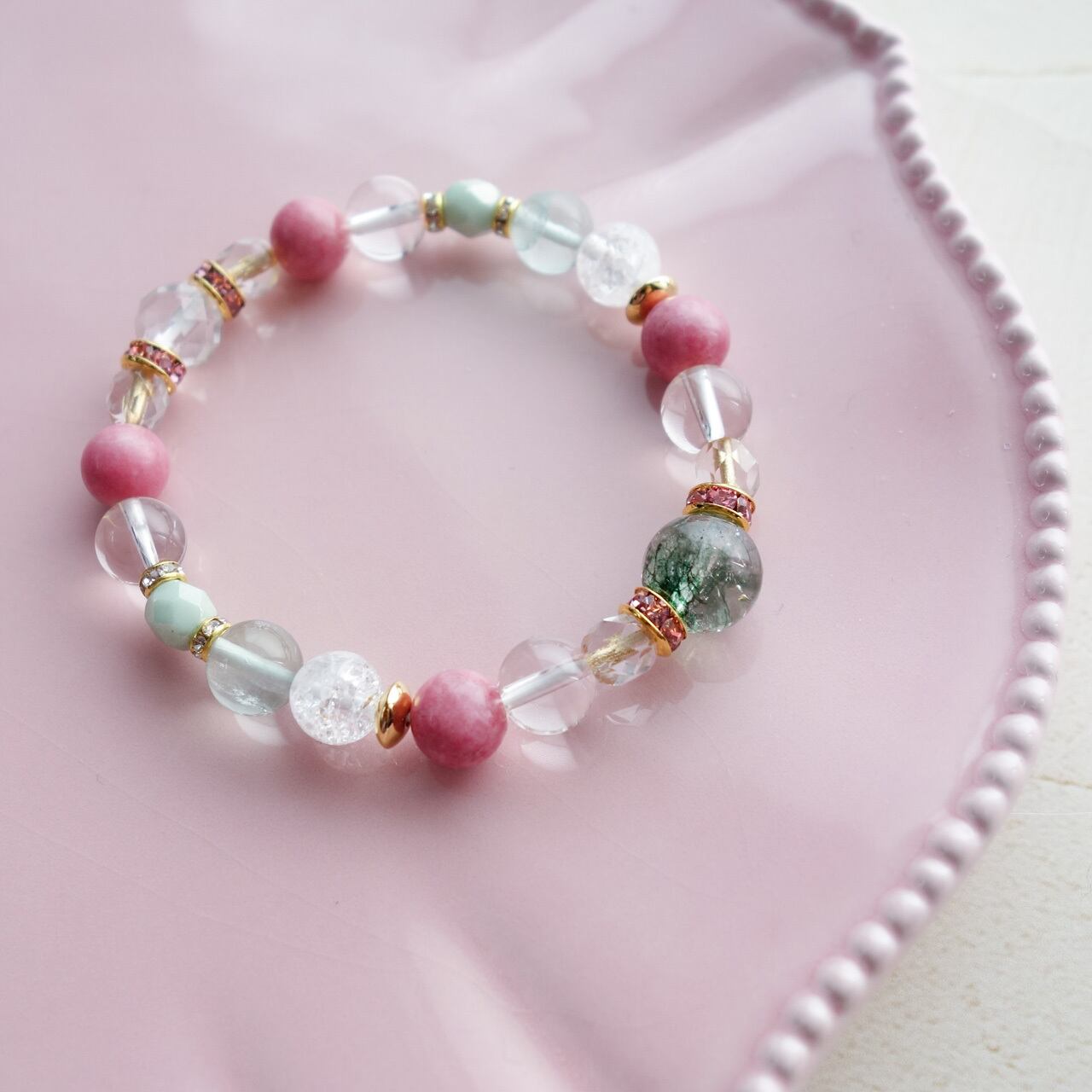 #63「クラック水晶×ロードナイト」_天然石ブレスレット