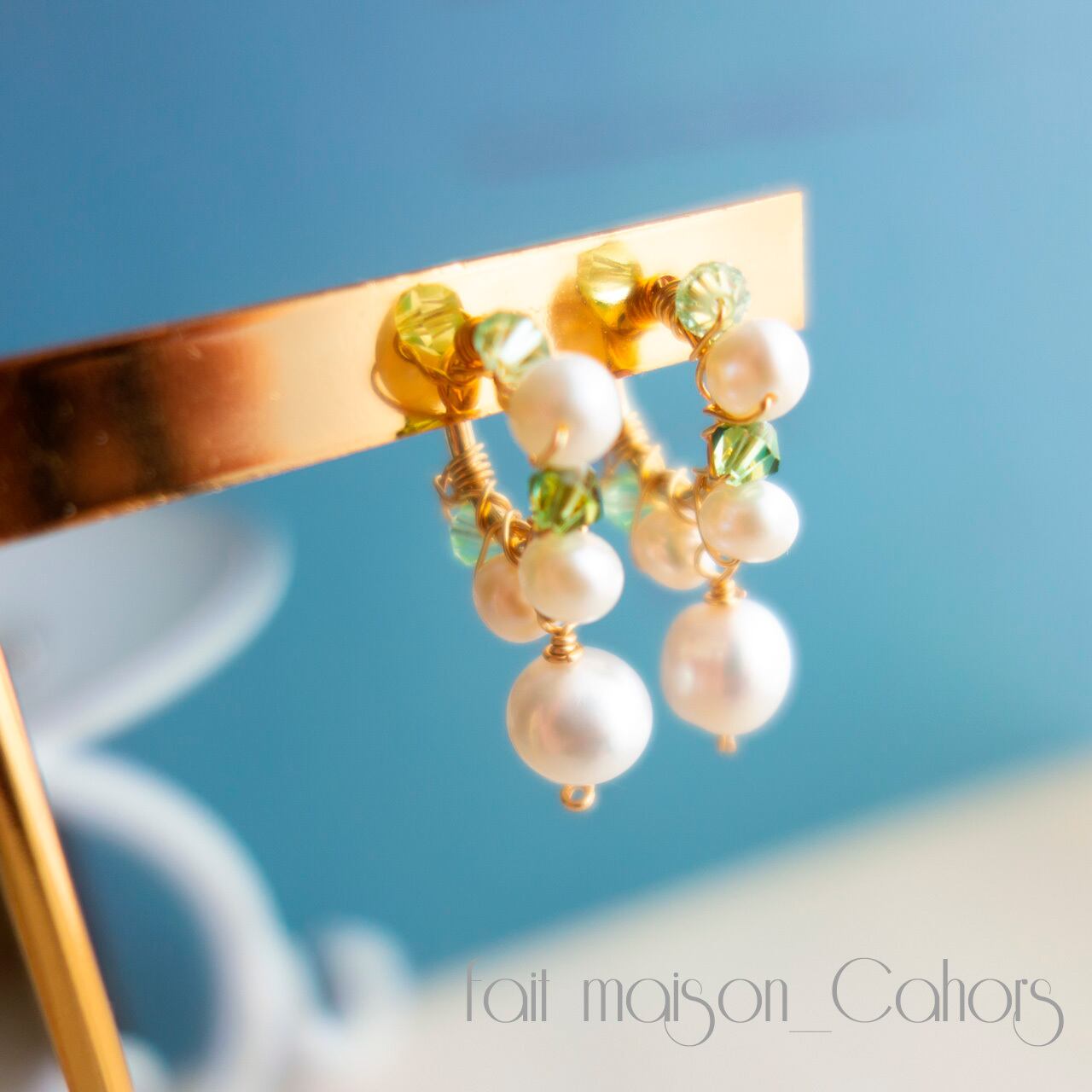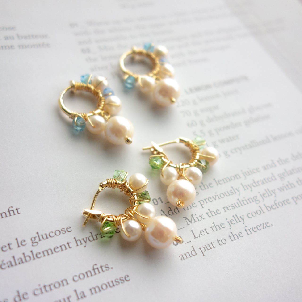 耳たぶに集まるスワロフスキーとパールトーンの輝きは