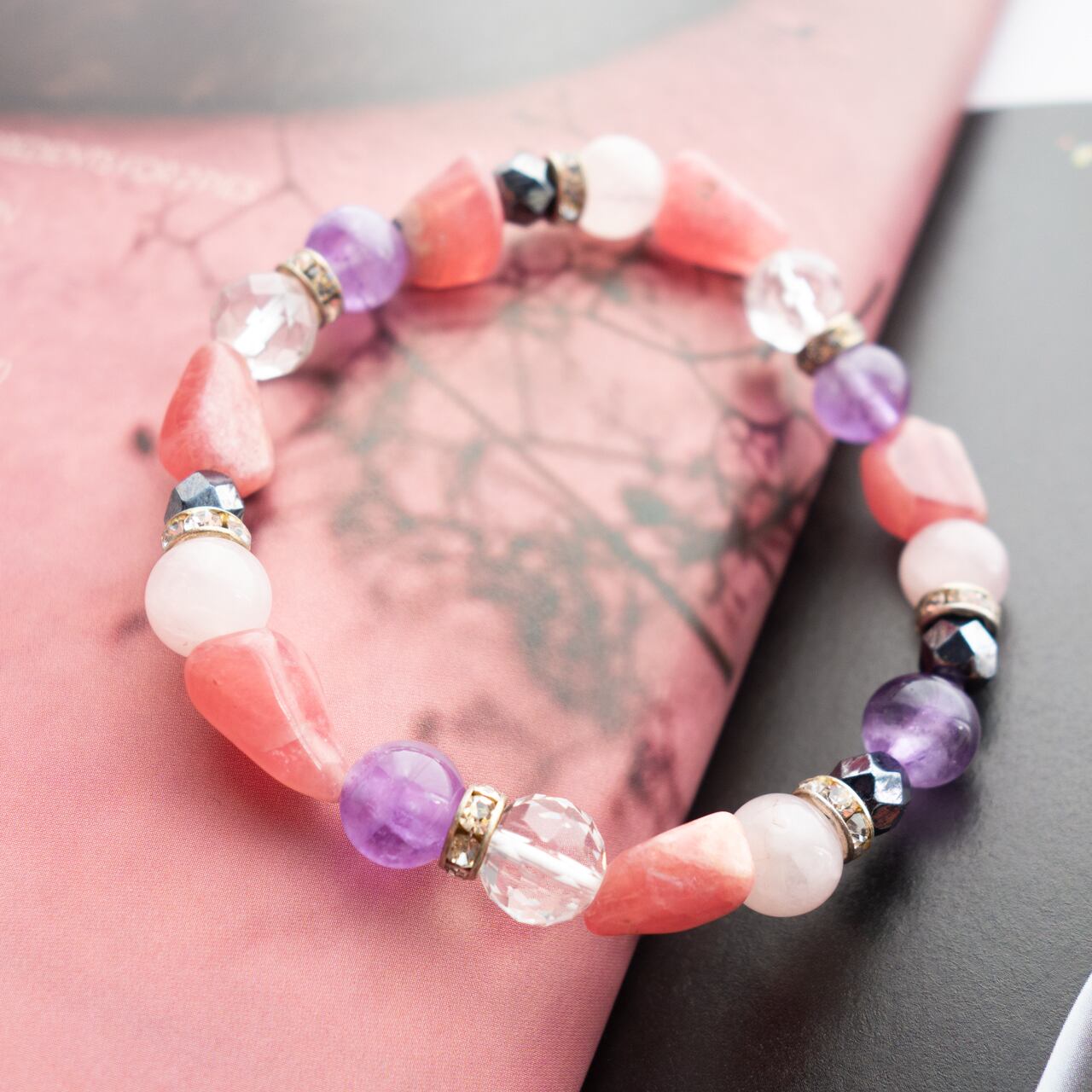 インカローズ × ローズクオーツ × アメジスト のブレスレットです。
