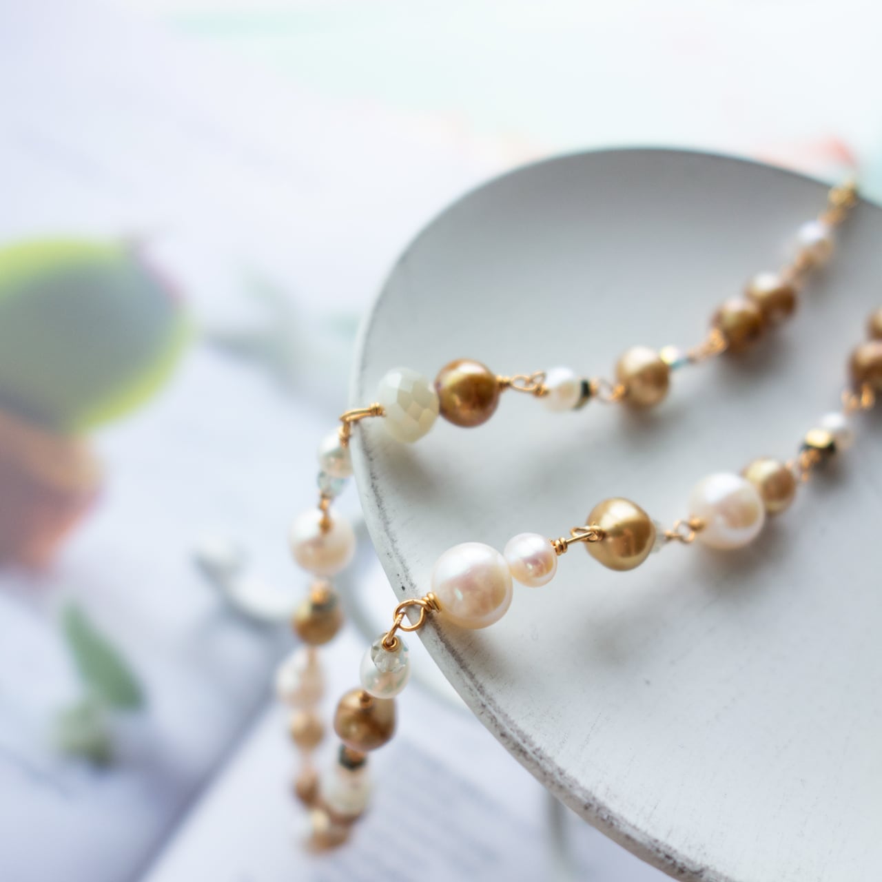 淡水パールシャンパンカラー x ホワイト ネックレス