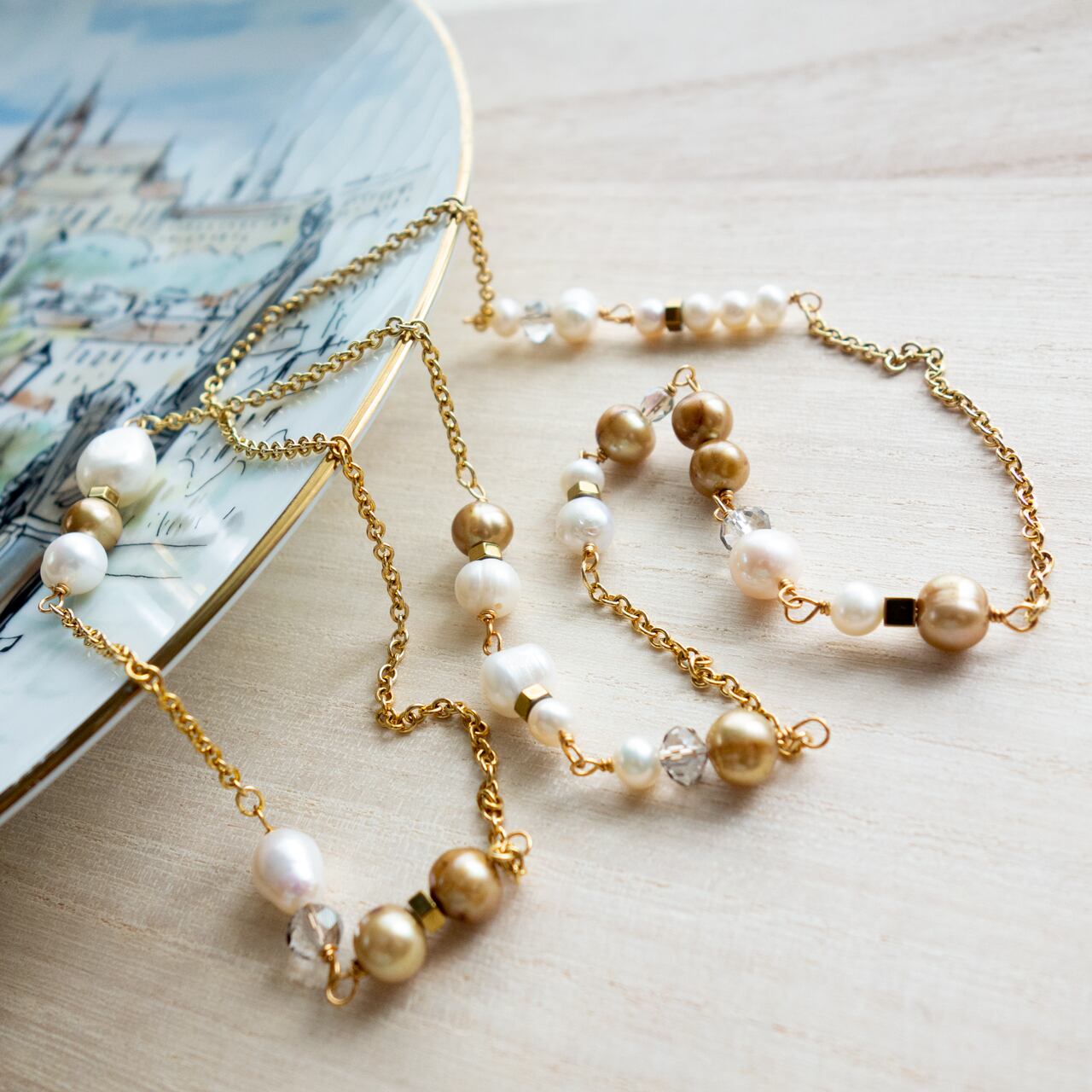 ■素材・・淡水パール ホワイトAAA x シャンパンカラーAA