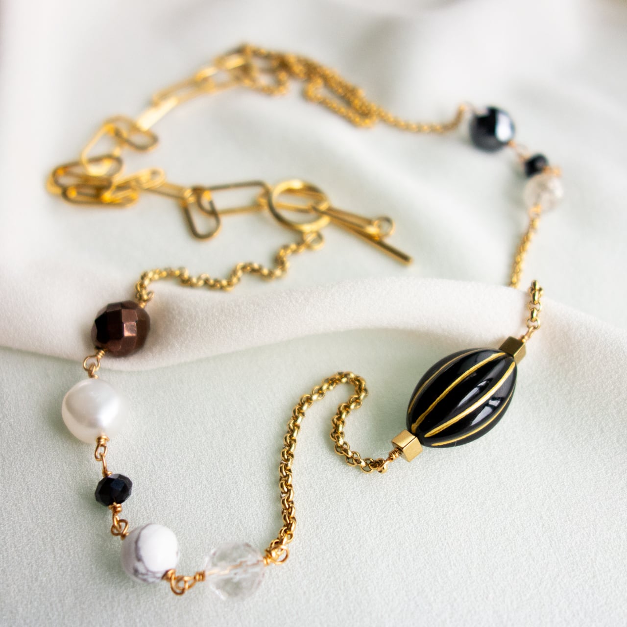 ■素材・・淡水パールAA、スモーキークォーツ、ハウライト、チェコビーズ