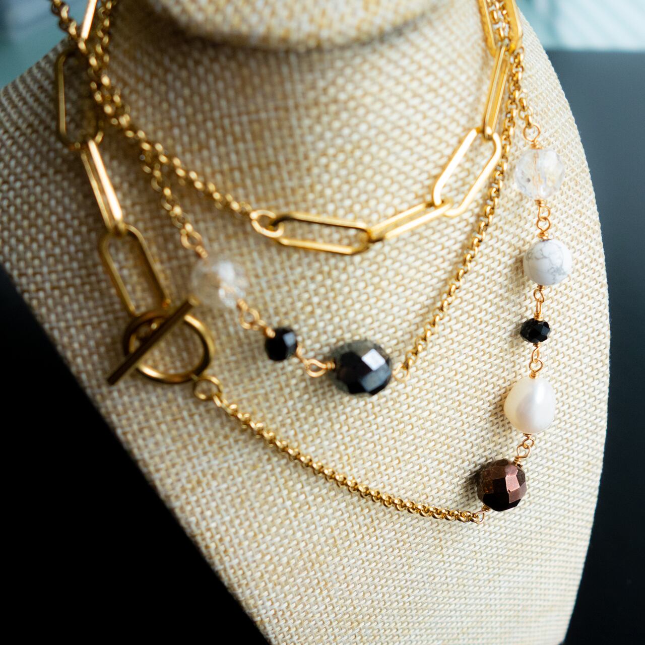 ビーズやチェーンを、マンテルの位置で自由にアレンジできますので、
