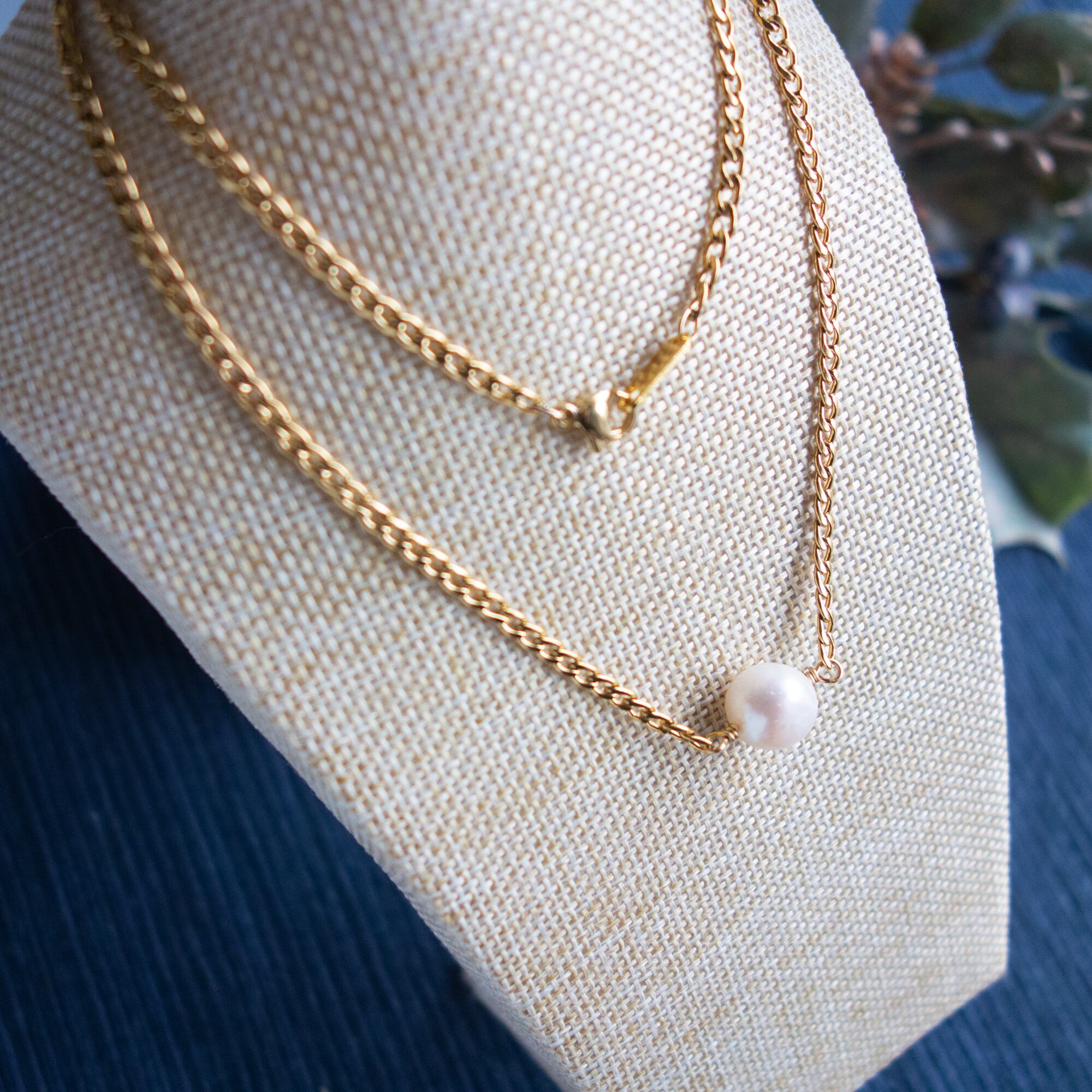 Lidia_リディア#2【 サージカルステンレス】淡水パールとチェーンのネックレス