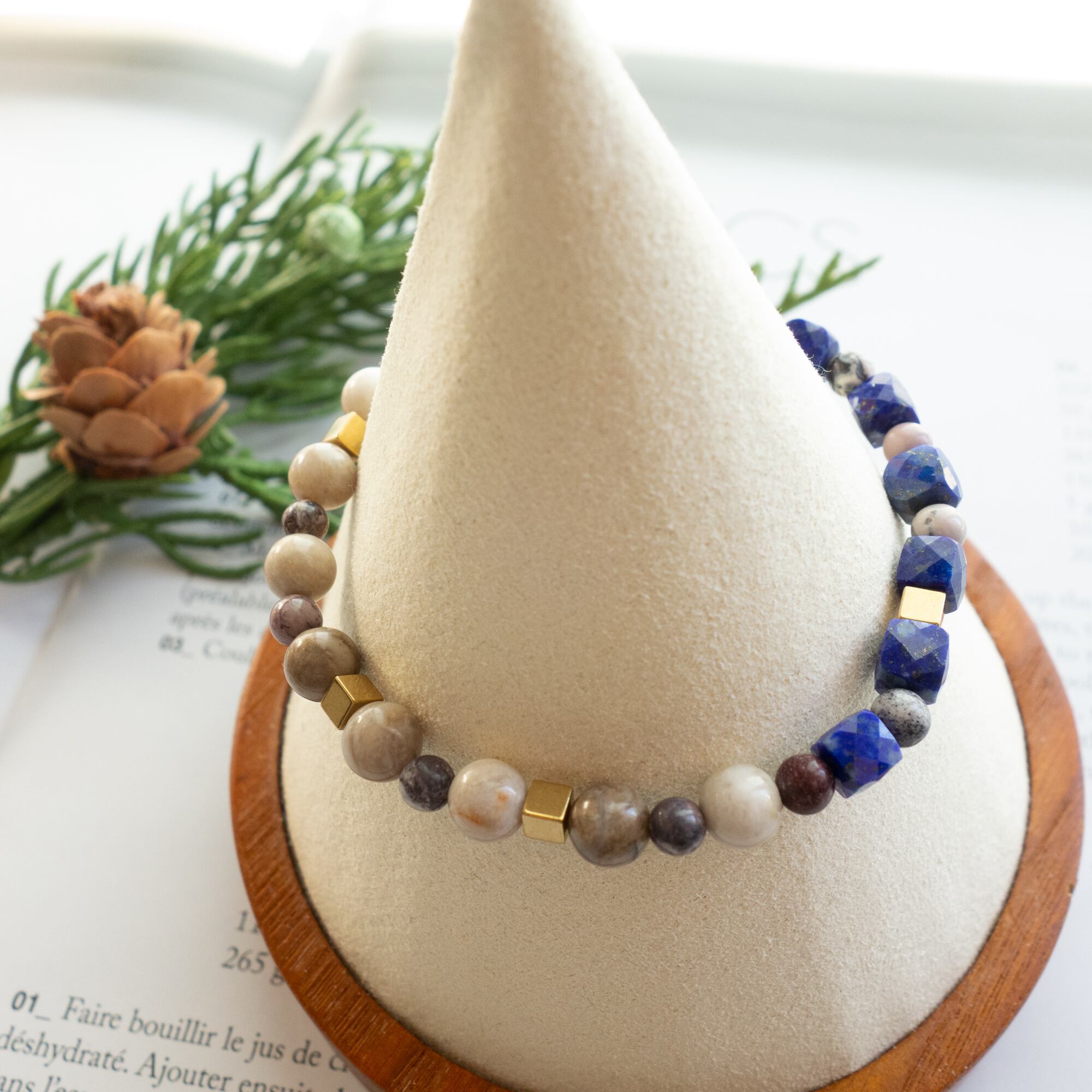 #96「Pavé;ラピスラズリ×ピクチャージャスパー」_天然石ブレスレット