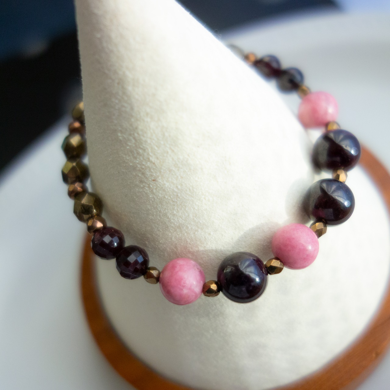 温かいピンク色のロードナイトと合わせ