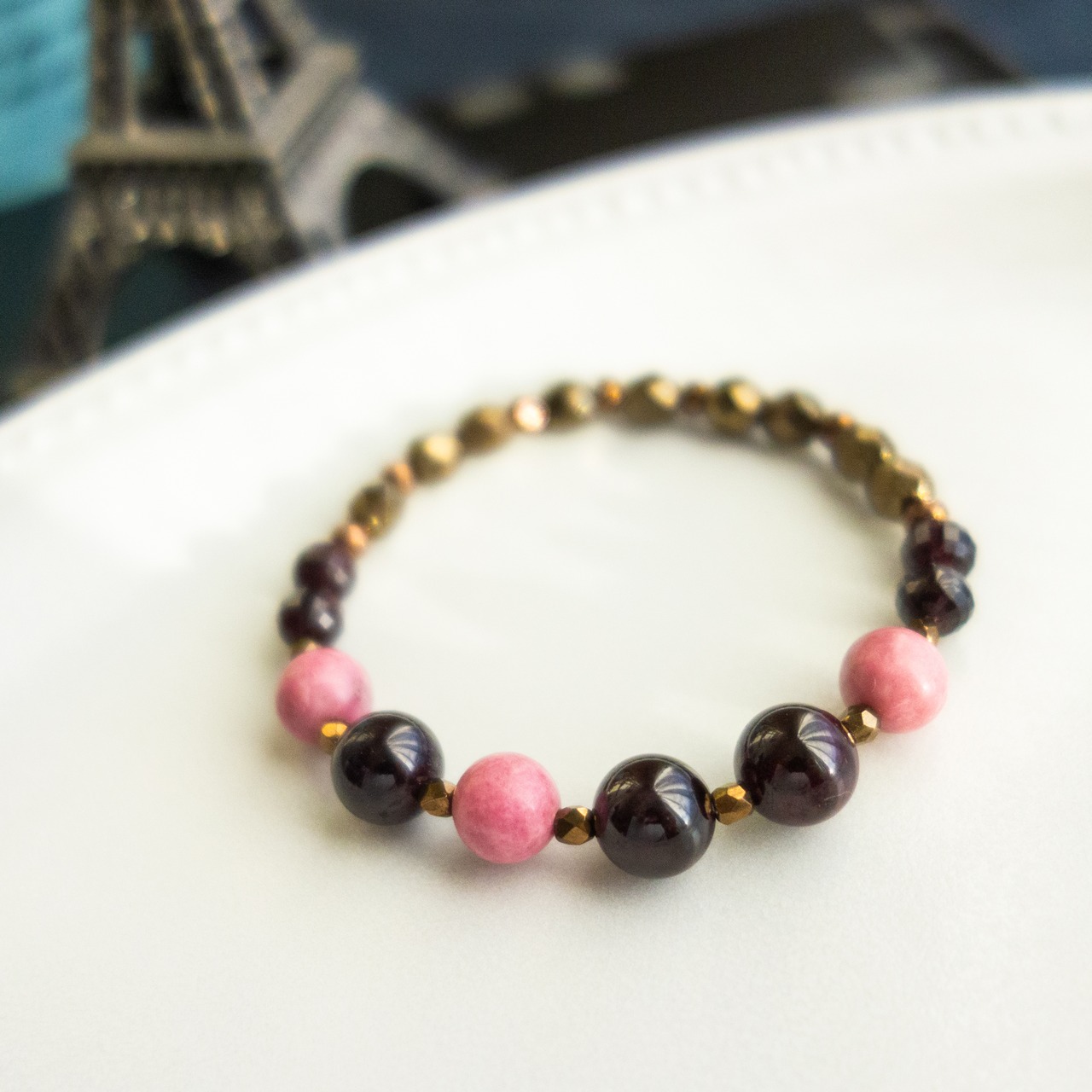 #100「ガーネット×ロードナイト」_天然石ブレスレット