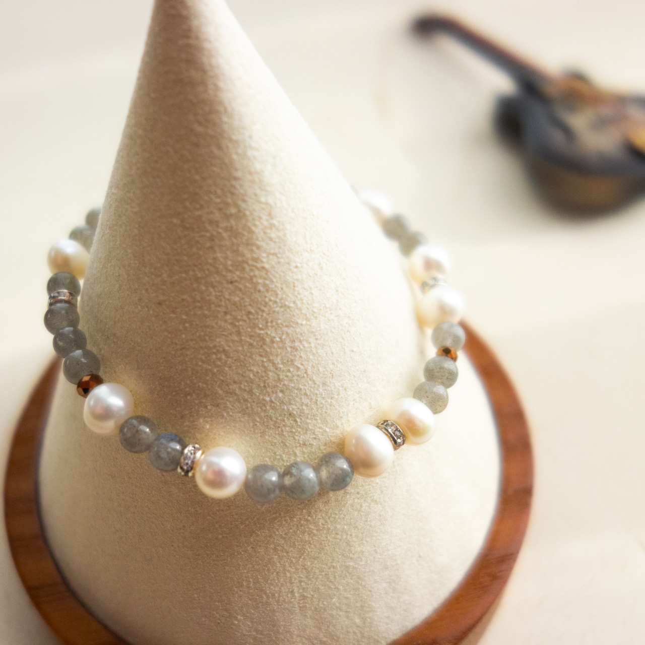 #97「ラブラドライト×淡水パール」_天然石ブレスレット