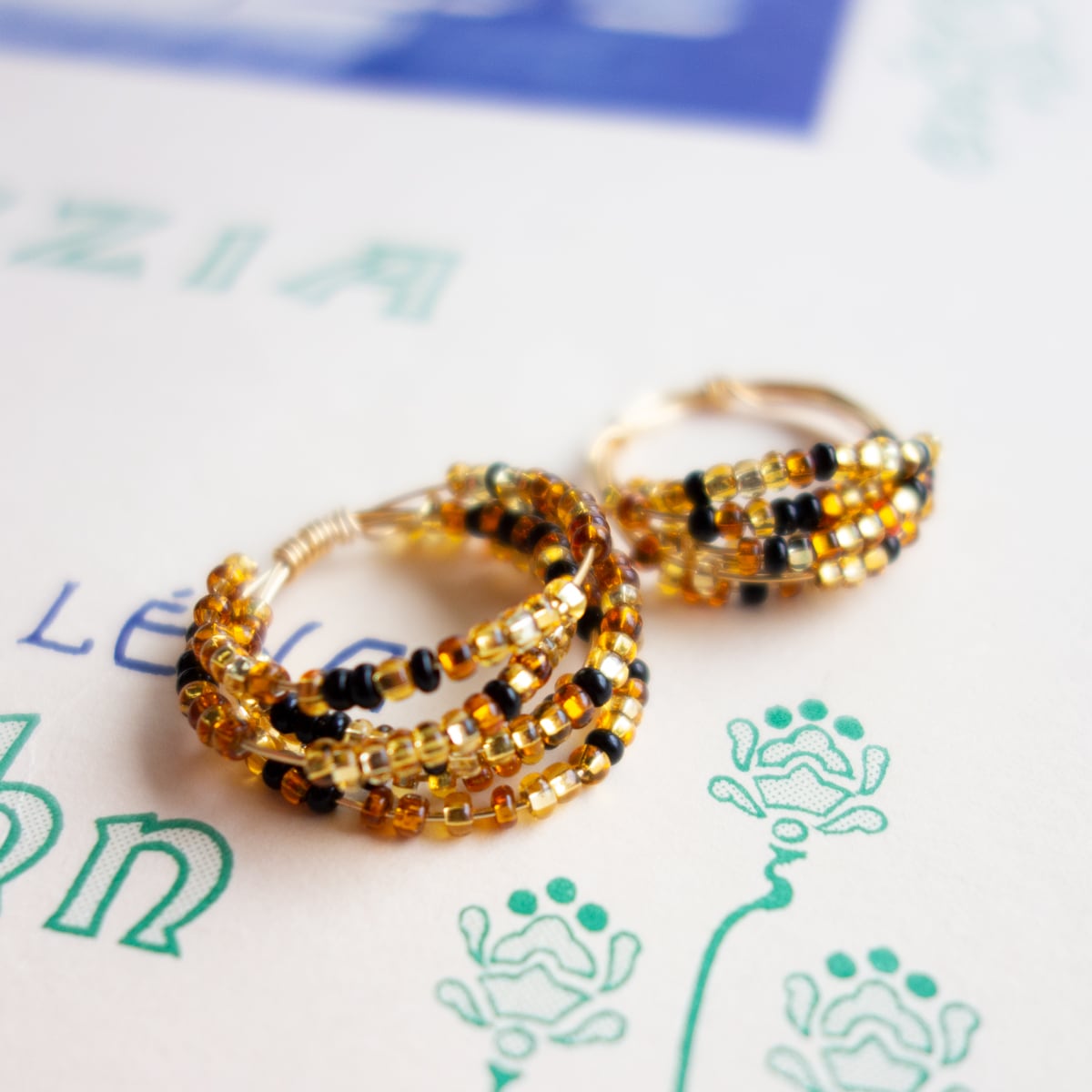 シャンパンゴールドや金茶色の小さいビーズ、