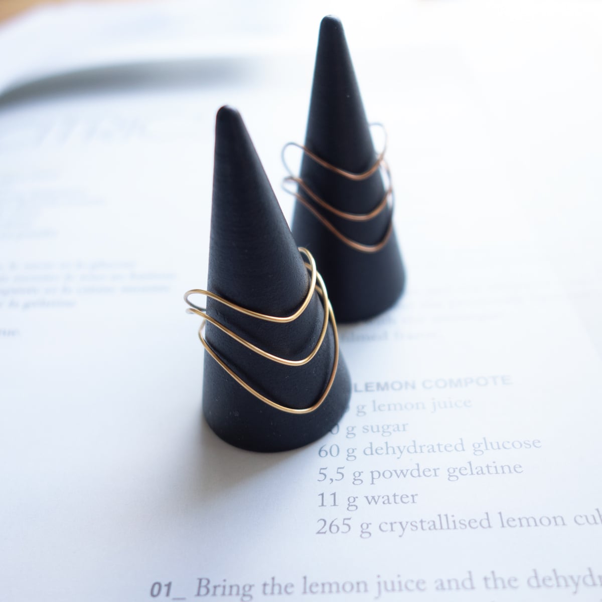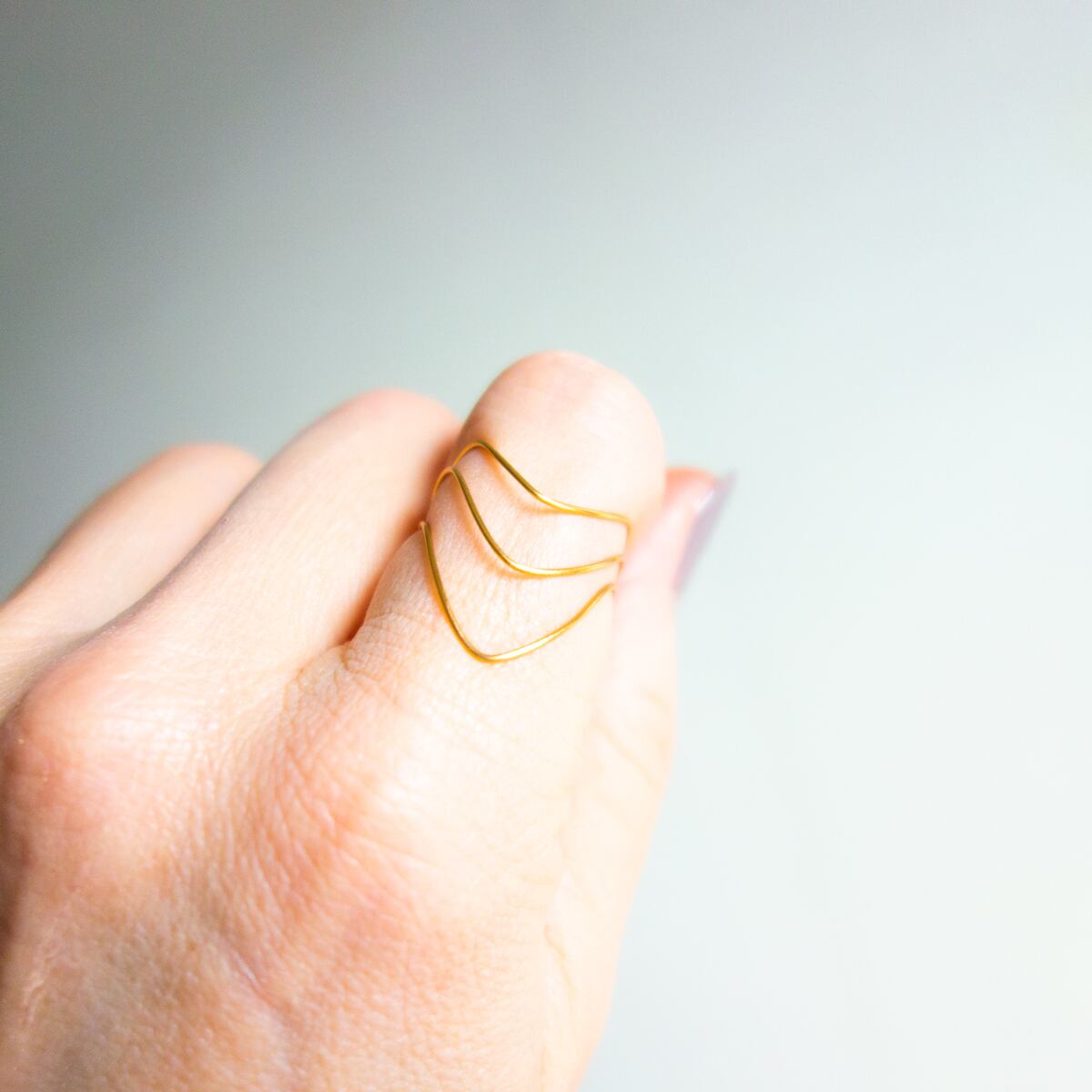 細身で曲線を描いたラインが特徴的なシェブロンリング。