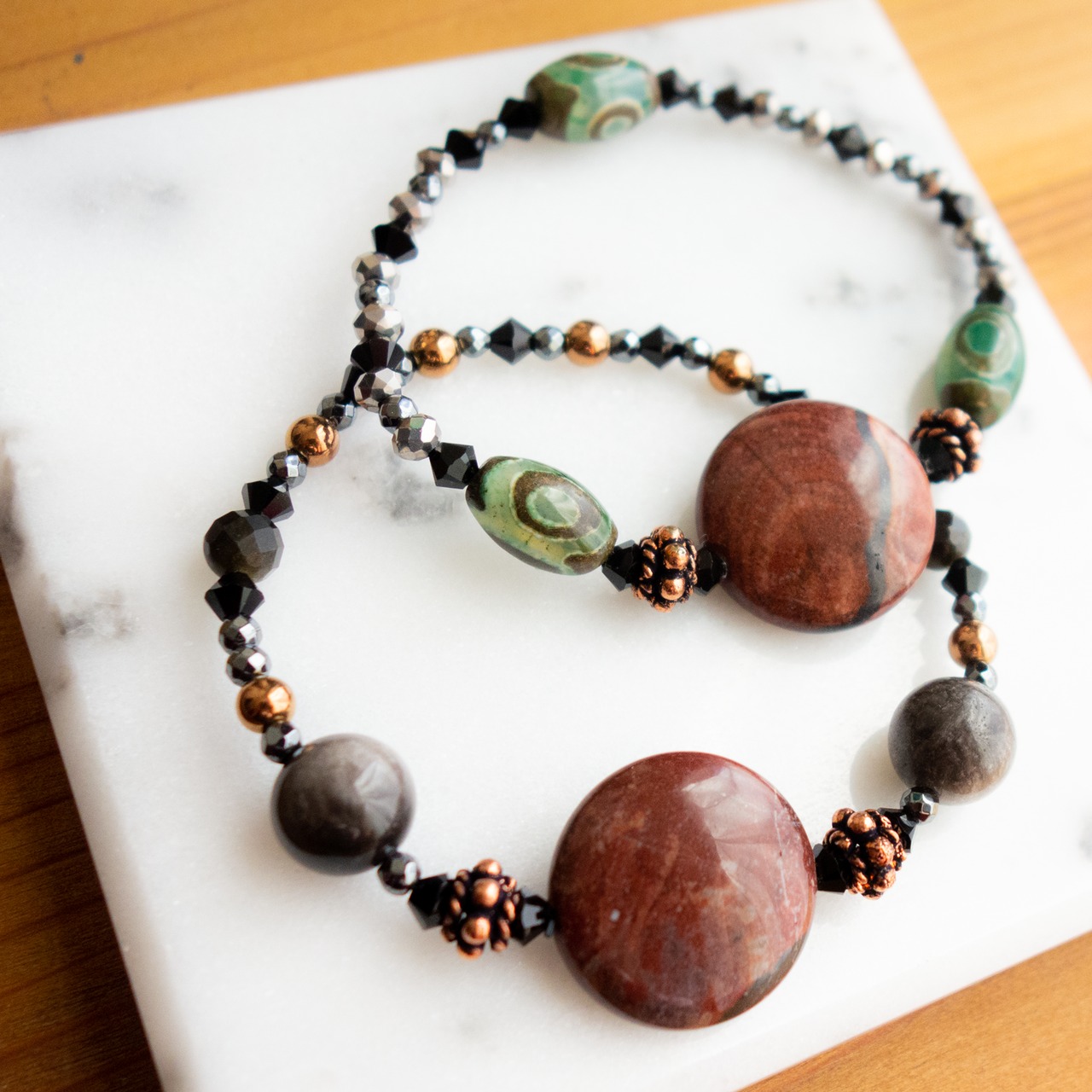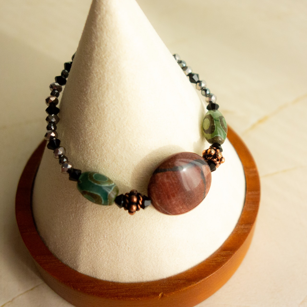 「レッドピクチャージャスパー×三眼天珠」_天然石ブレスレット