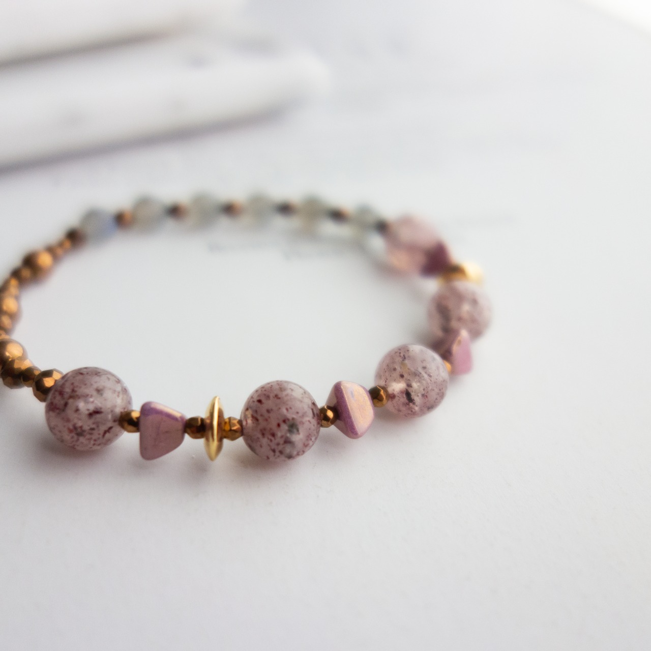 #210「ピンクエピドート×ラブラドライト」_天然石ブレスレット