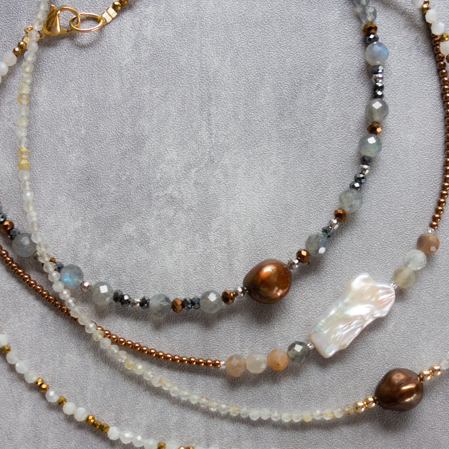 ■素材・・淡水パール、ムーンストーン、ヘマタイト
