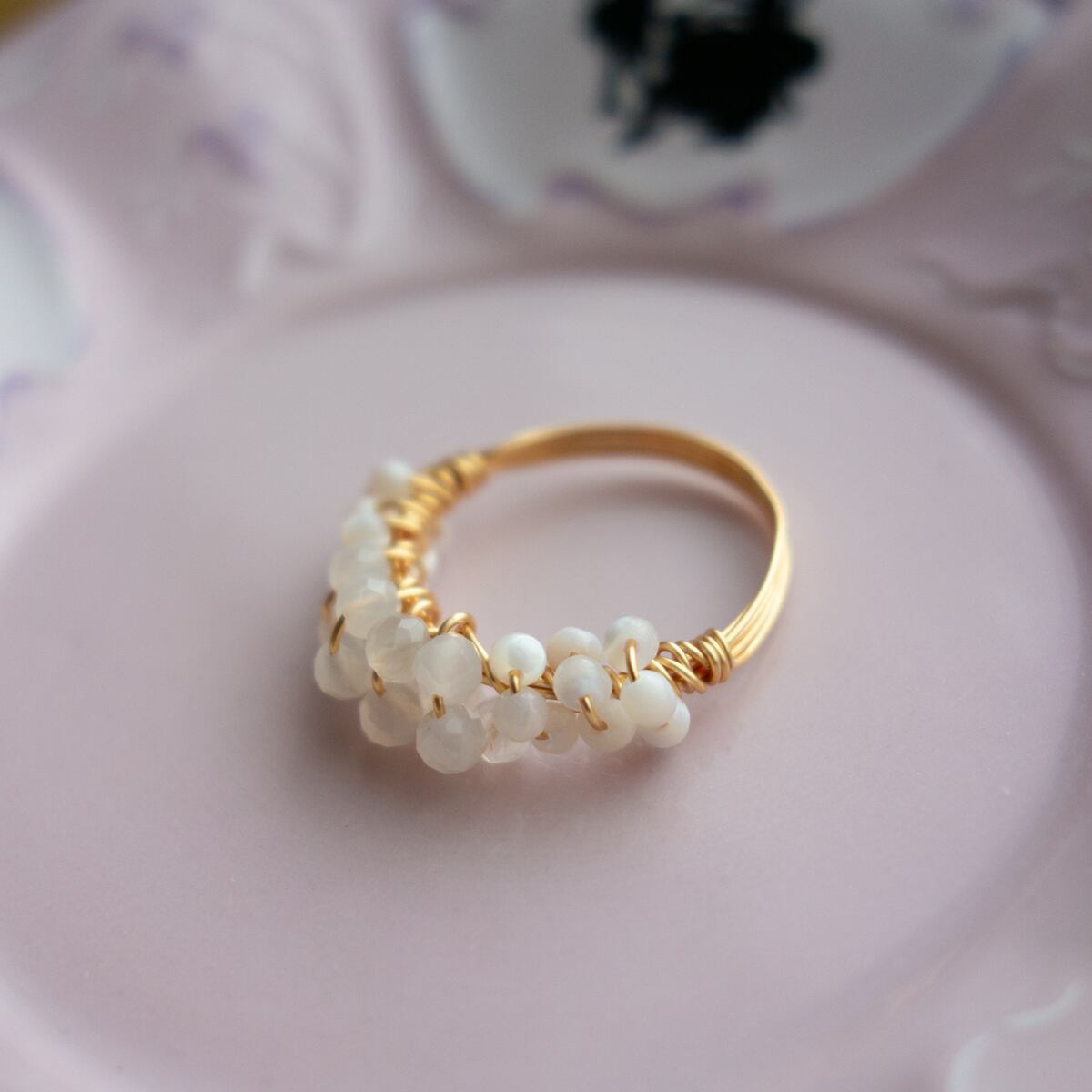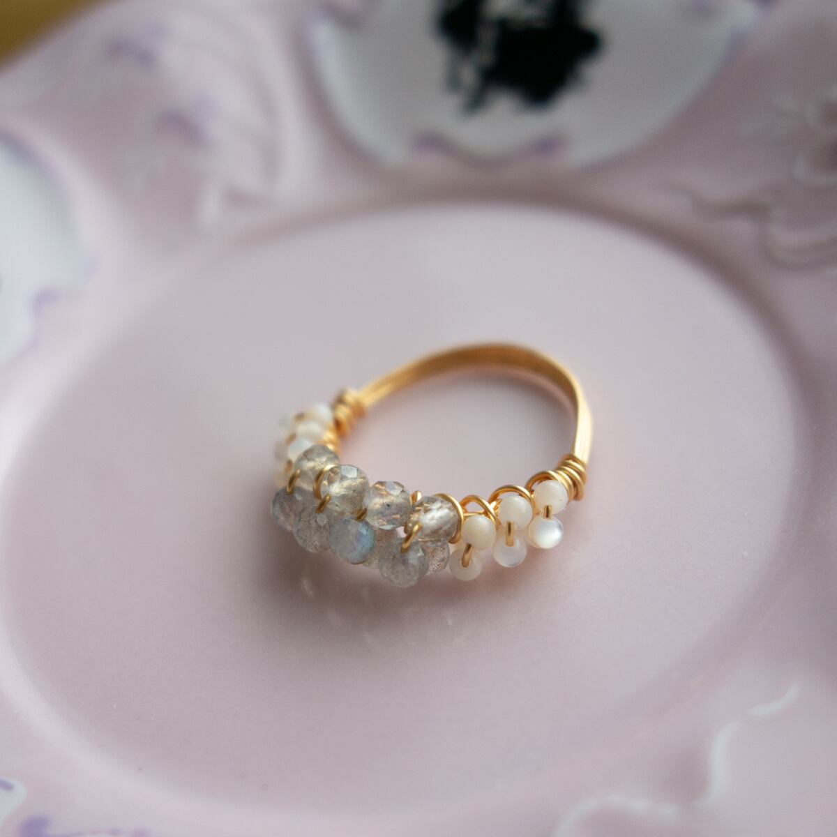 *mousse_ ムース/【マザーオブパール×ラブラドライト,ムーンストーン】_天然石ワイヤーリング/[Mother of pearl x labradorite, moonstone]_Natural stone wire ring