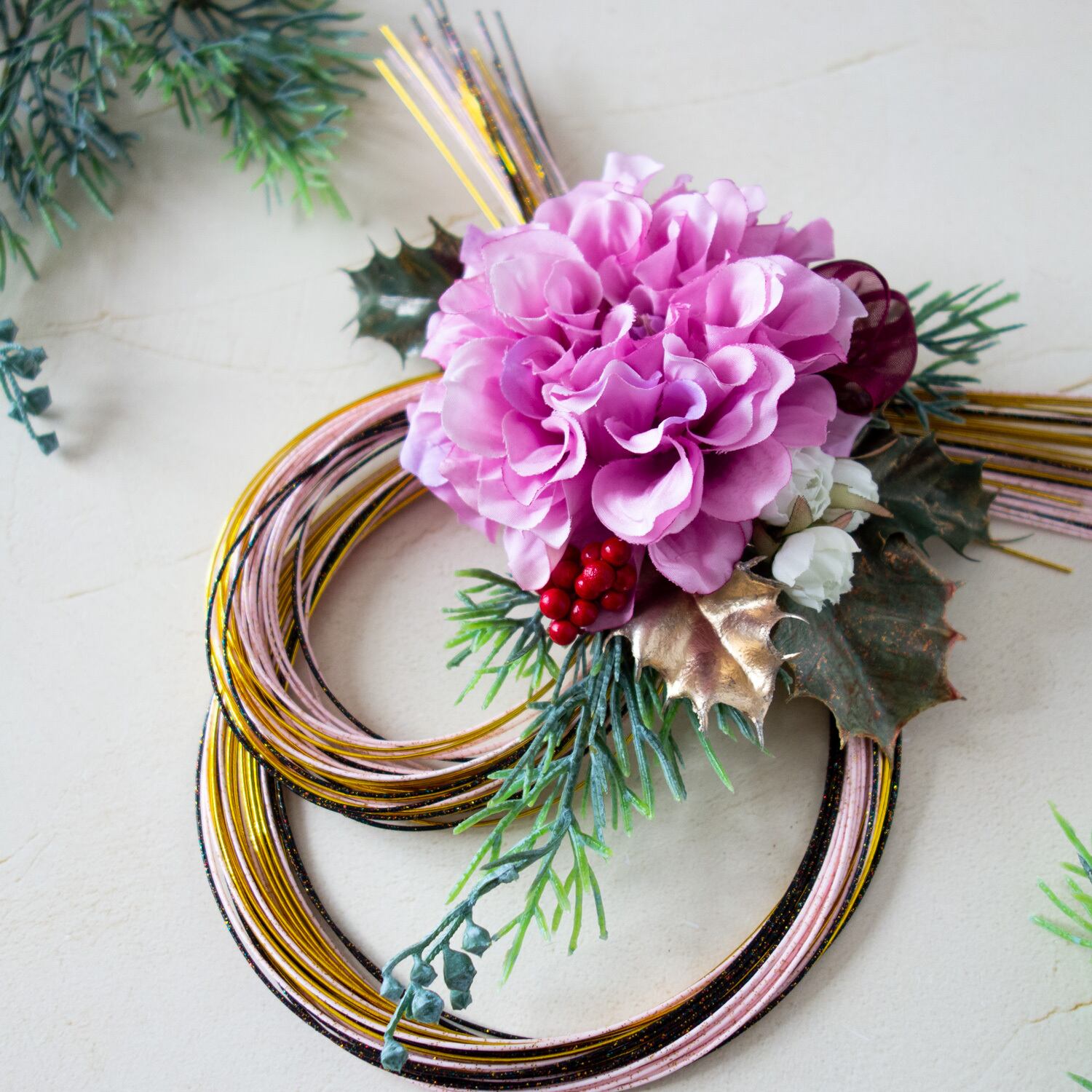 usubeni"_薄紅【水引と柊の和モダンリース】