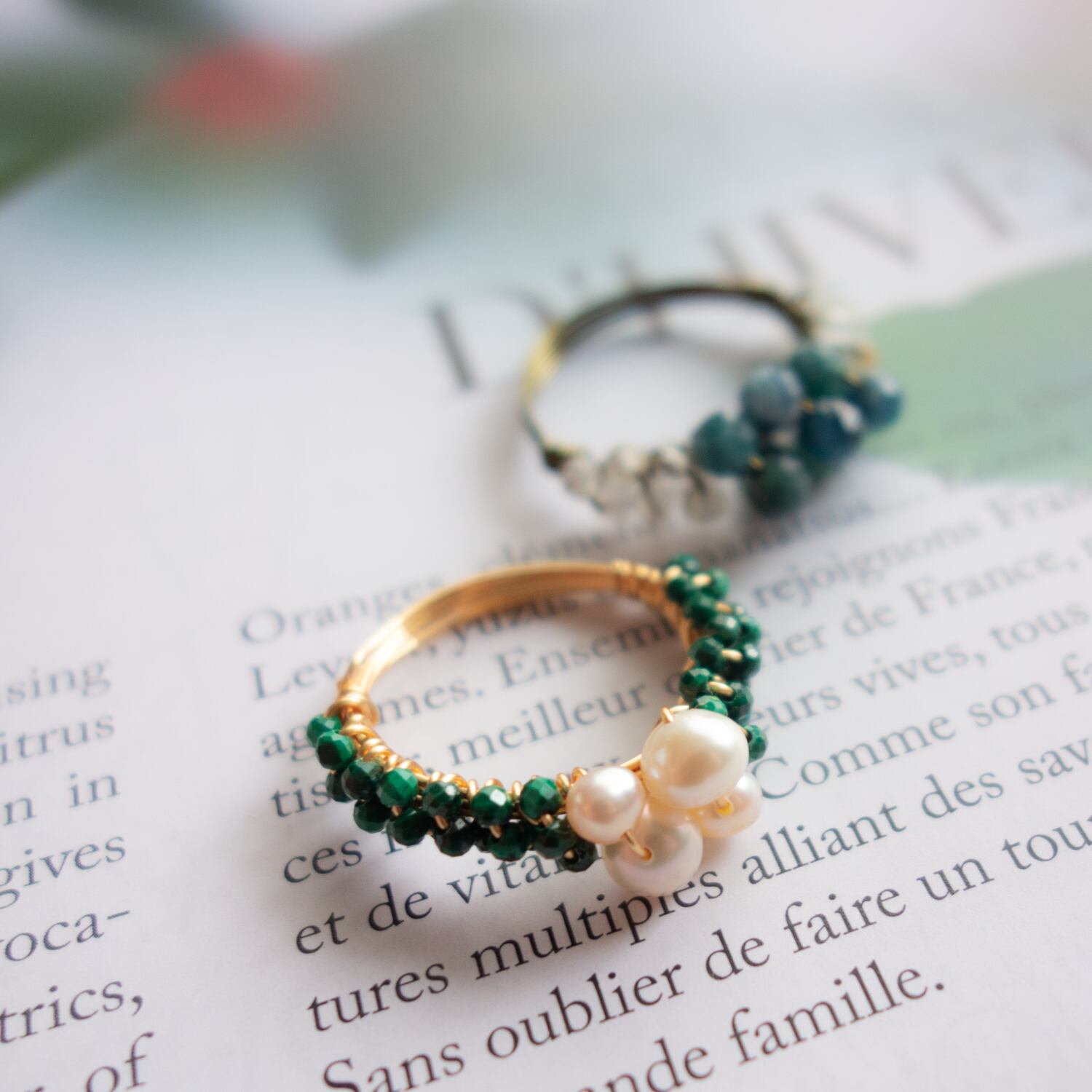*mousse_ ムース/【淡水パール×マラカイト】_天然石ワイヤーリング/[Freshwater pearl x marachite]_Natural stone wire ring