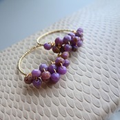 カッティングの入った3mmのストーンを、14Kゴールドフィルドのワイヤーに散りばめています。フォスフォシデライト、は、どのストーンも一粒一粒の色彩や濃淡の違いがとても個性的で、たくさん集まることで一層の存在感を発揮します。