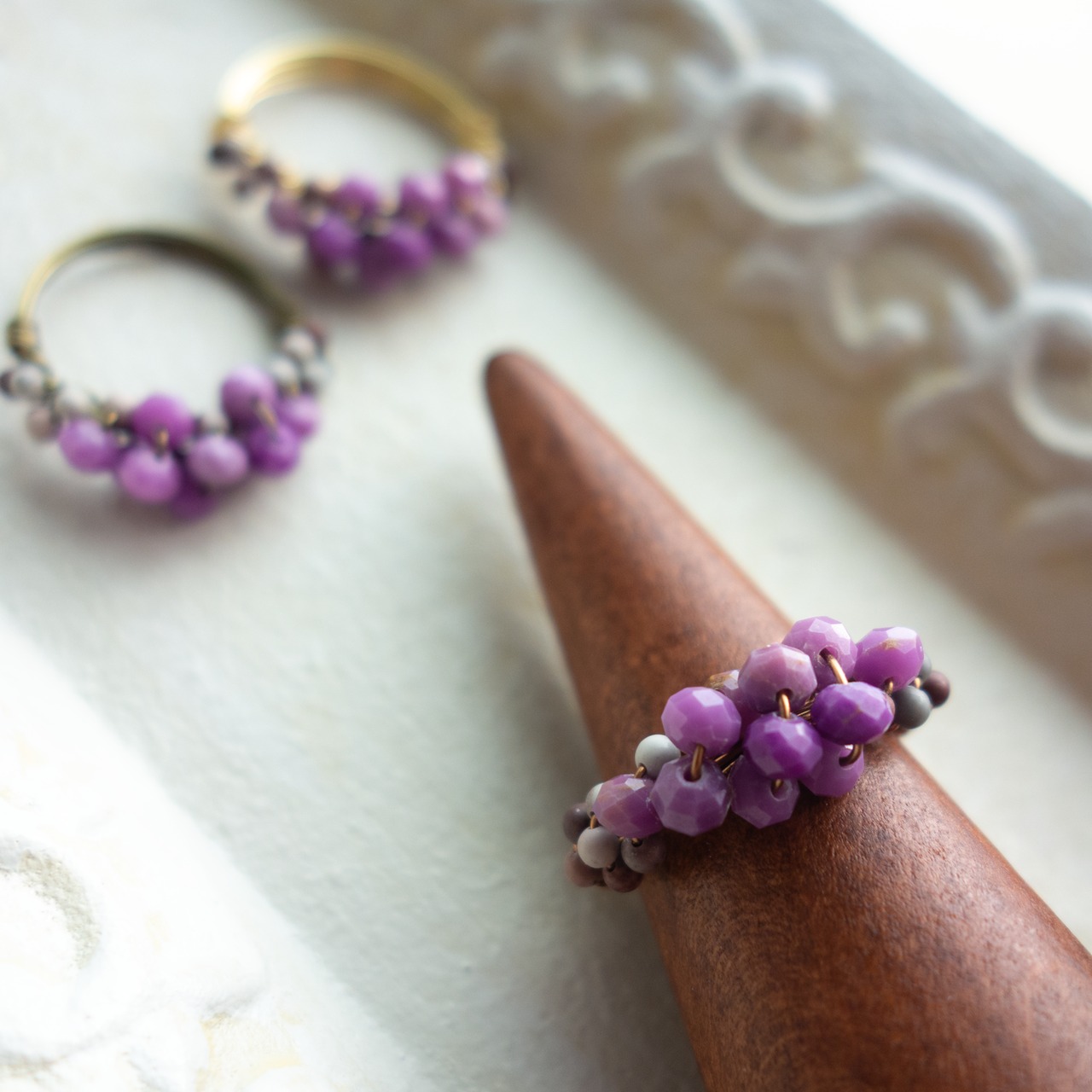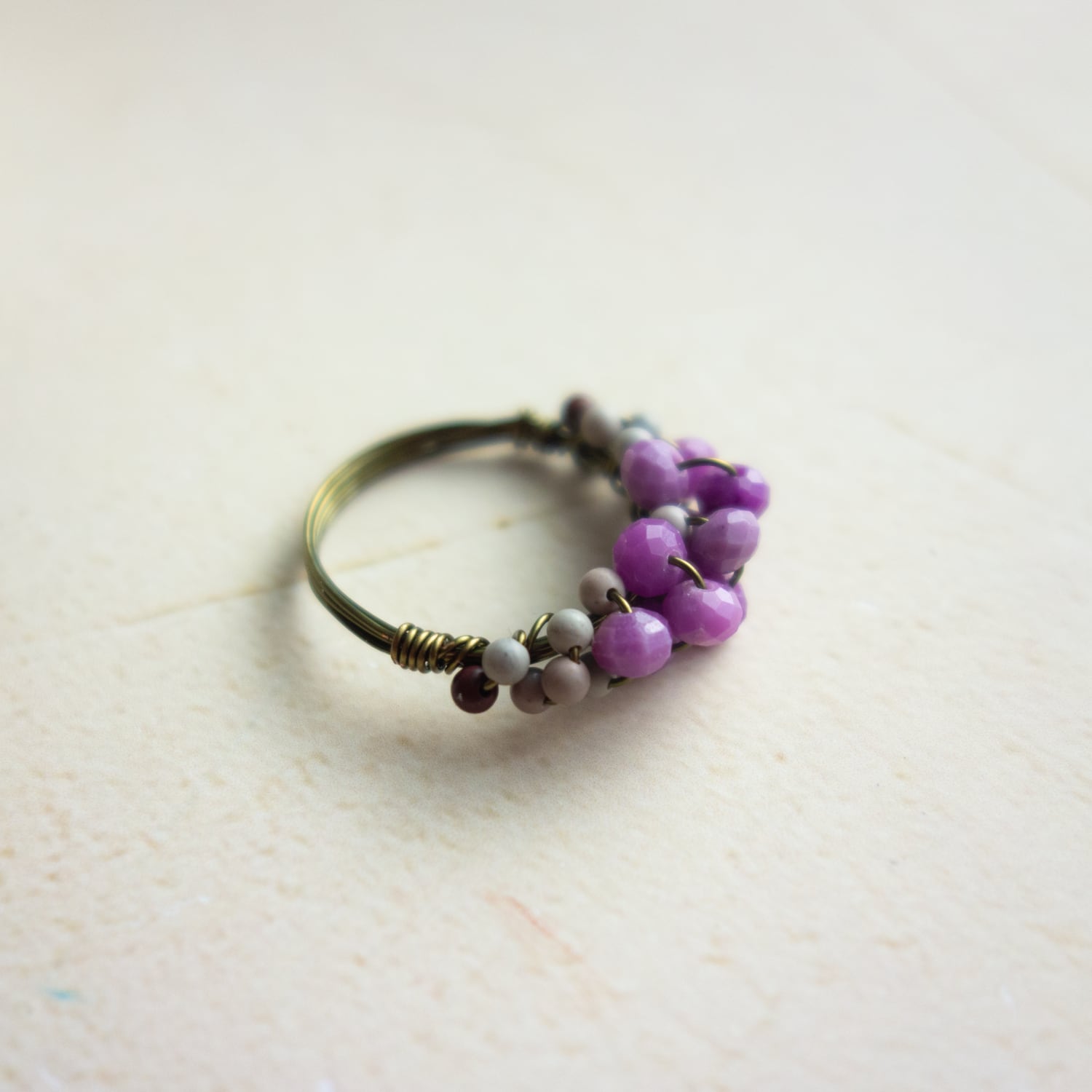 *Mousse Series: A wire ring studded with small natural stones like sparkling "bubbles."
