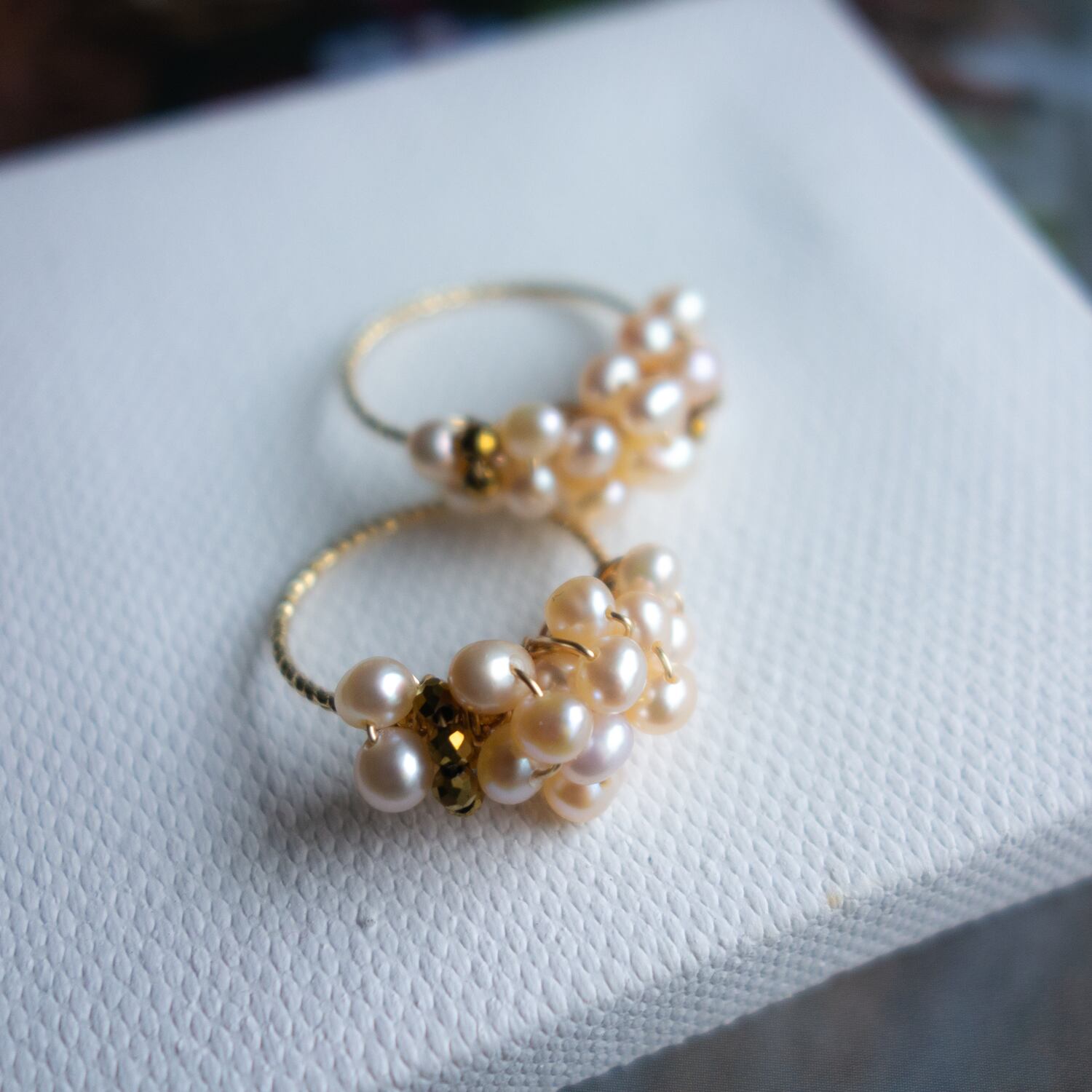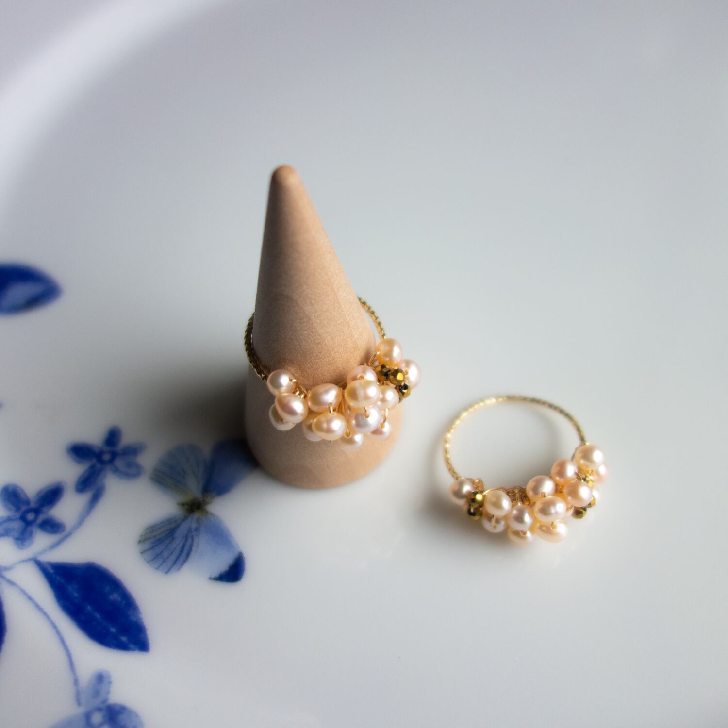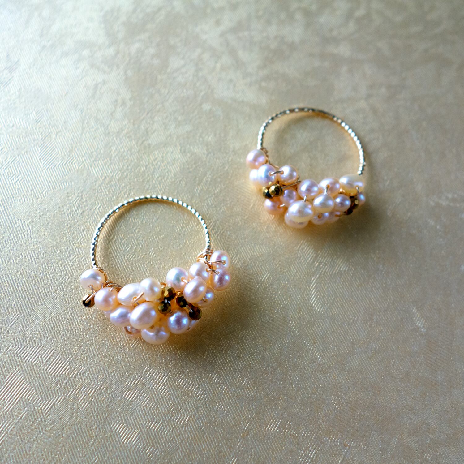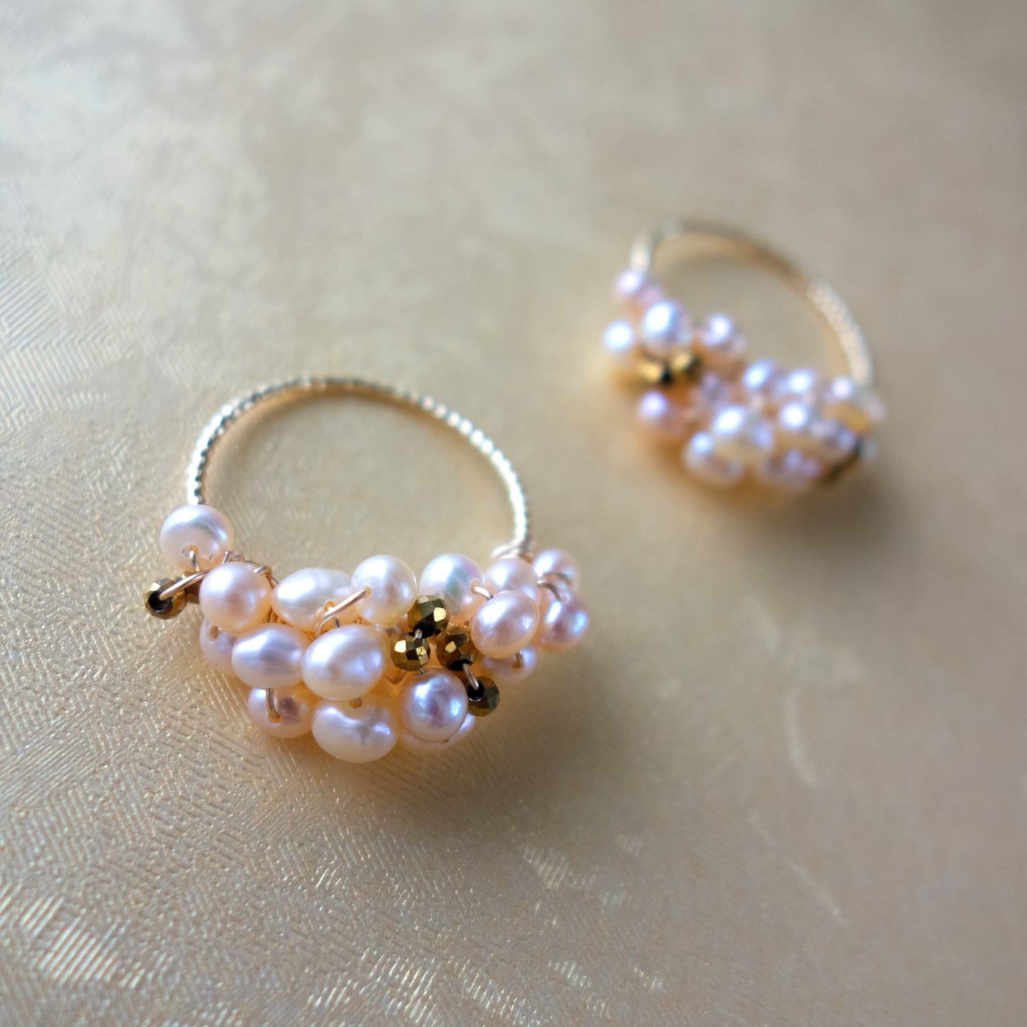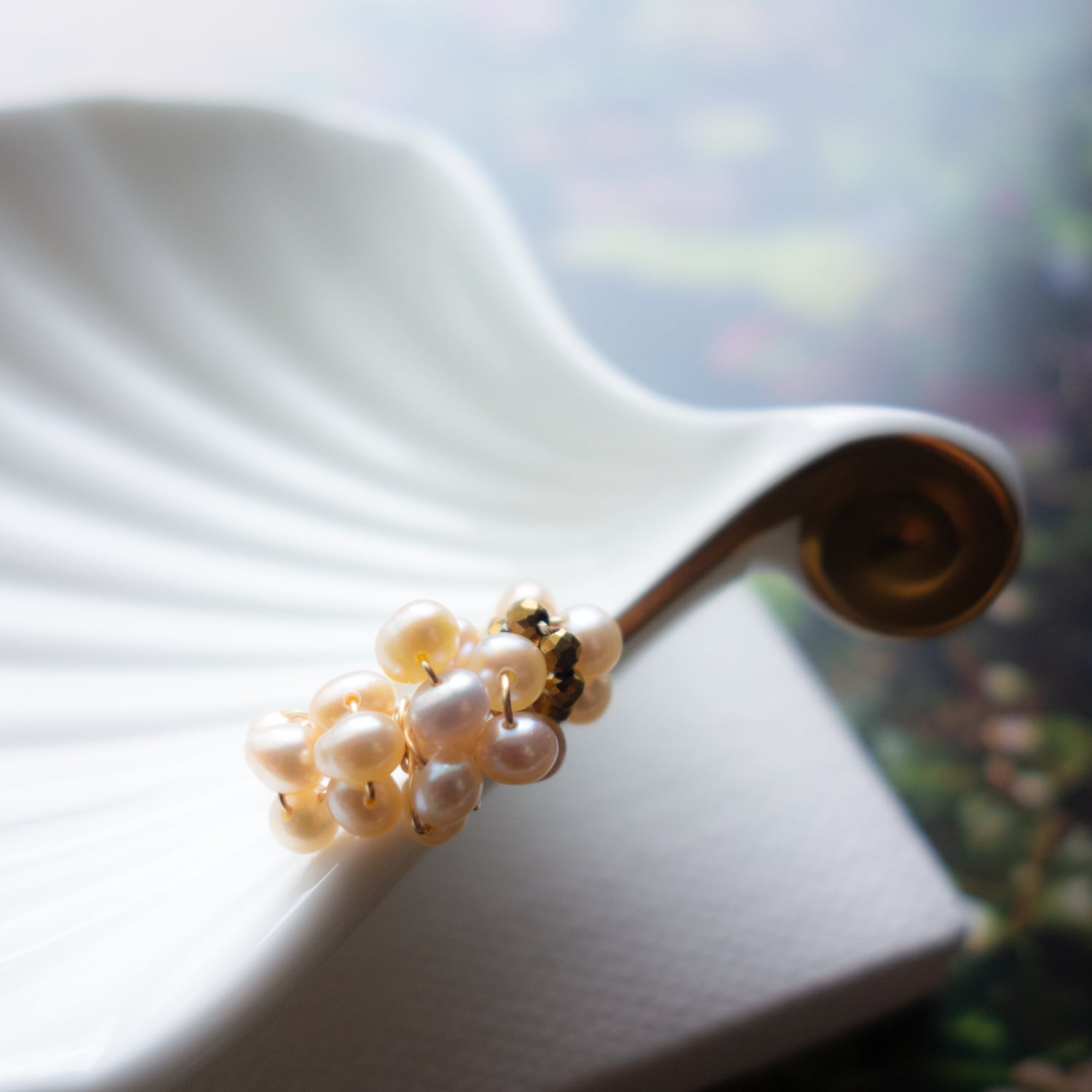 小粒のパールは、少しピンクがかった色合いで暖かく優しいトーン。